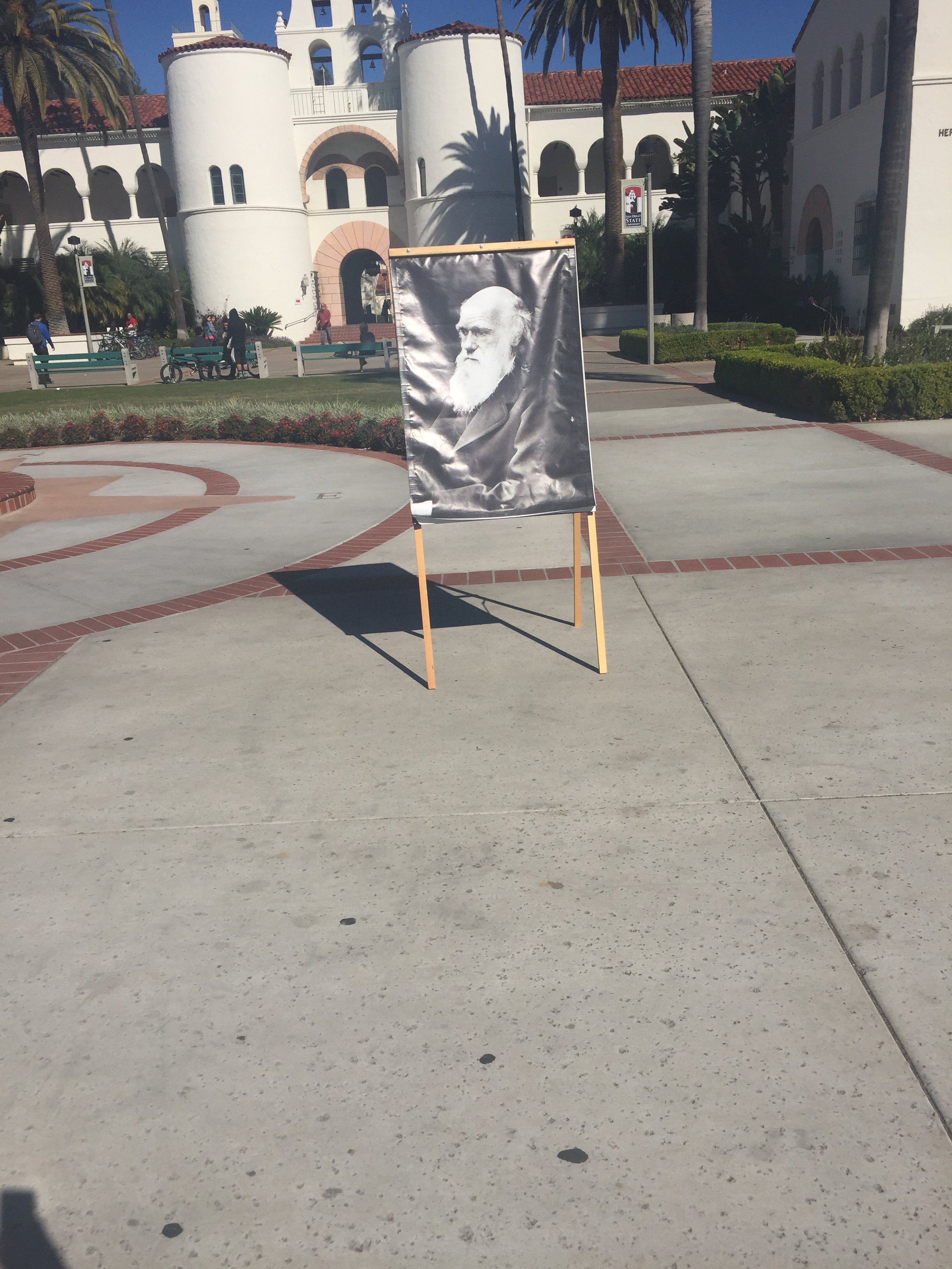 Today I was walking through campus and saw a man photographing this picture of Charles Darwin in the middle of Campus. I decided to ask him what it was about, and he doing this because today is Charles Darwin’s birthday. Charles darwin was an english naturalist and geologist. He contributed a lot to the evolution theory. HAPPY BIRTHDAY DARWIN!