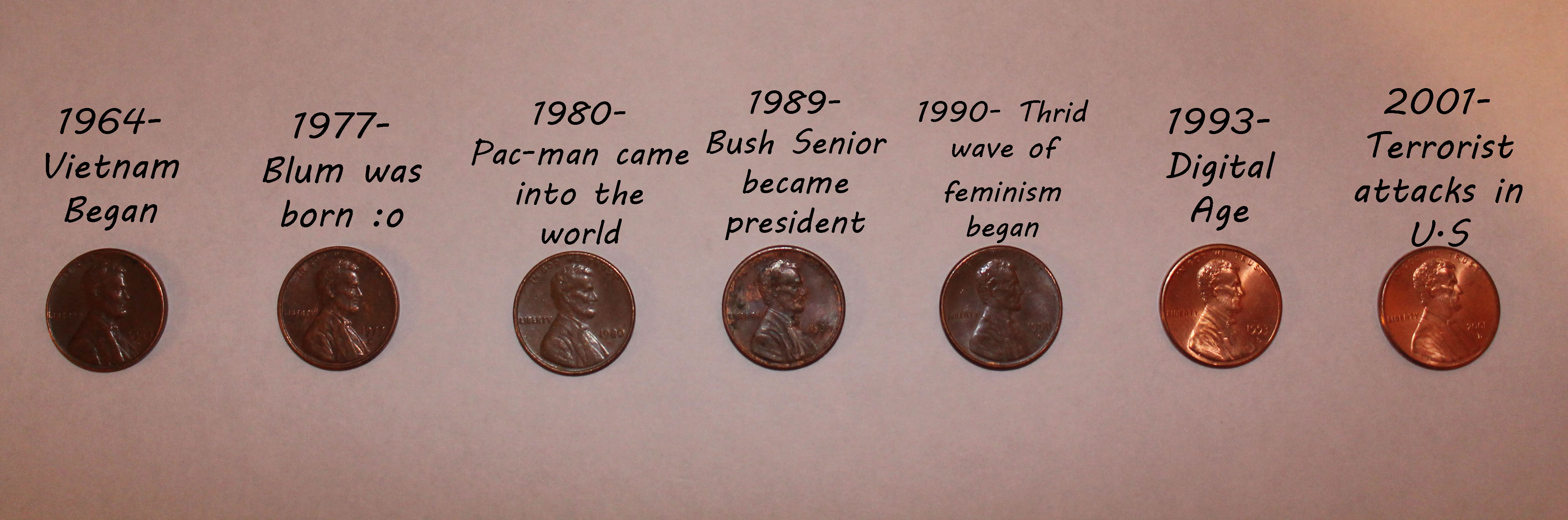 Hack #1 February 13, 2015sarahtresser I was at work and found a really old penny, which I subsequently lost, but I thought it would be cool to find some random pennies and link them to historical events, like pac-man. Share this: Click to share on X (Opens in new window) X Click to email a link to a friend (Opens in new window) Email Click to share on Facebook (Opens in new window) Facebook Click to share on LinkedIn (Opens in new window) LinkedIn Click to share on Pinterest (Opens in new window) Pinterest Click to share on Tumblr (Opens in new window) Tumblr Like Loading... Related