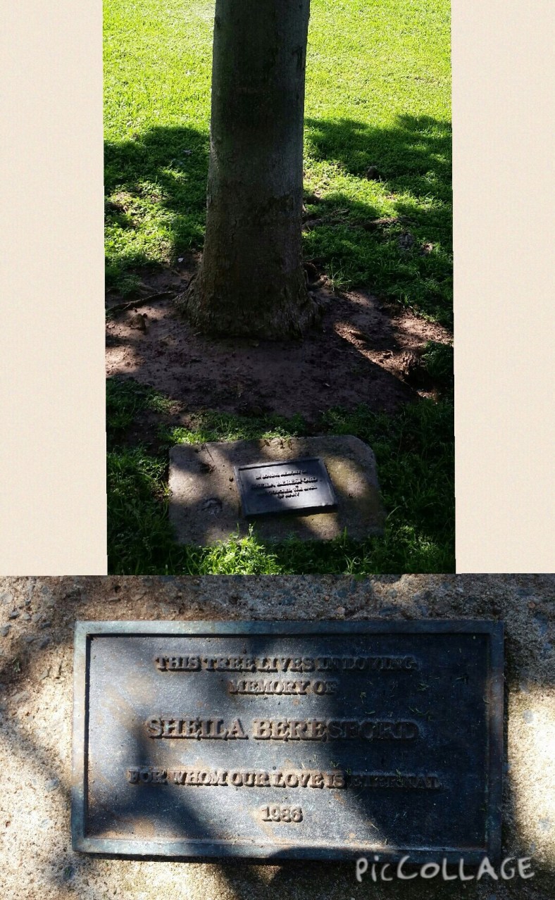 “This tree lives in loving memory of Sheila Bereseord for whom our love is eternal. 1986”, this plaque was cemented beside a tree in Balboa Park, where the love for Sheila B. will be represented forever.