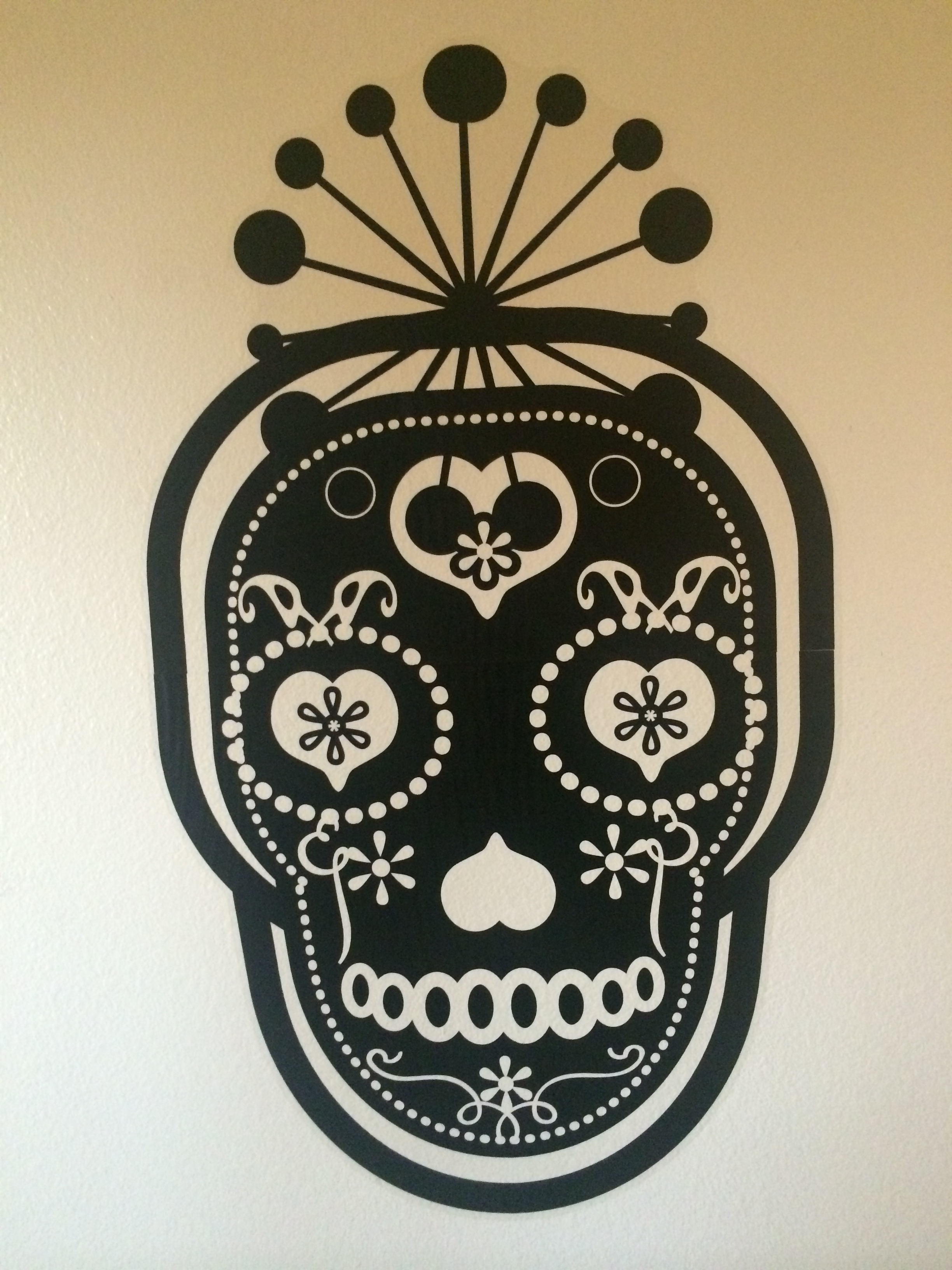 I purchased this black and white skull as a wall decal for my apartment from Ikea. However, it got me thinking about a Mexican tradition I learned about in Spanish Class. As part of “Dia de los muertos,” the spanish version of Halloween, people decorate skulls in bright colors and patterns as seen in the second picture. This is supposed to paint the idea of death in a positive light instead of a sad one, and to promote the idea of a joyous afterlife. If we go even further back in history, we see that the Mexicans actually adopted this tradition from the Aztecs. Since we live so close to the Mexican border and since our school mascot is an Aztec, I thought this would be interesting to share.