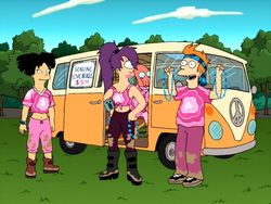 This week in class Dr.Putnam spoke about hippies and the movement they started. Towards the end of class he presented a video that portrayed a kind of space hippie in a Star Trek Episode. This reminded me of an episode of Futurama named Bendin’ in the wind, where the character Fry and gang take an old Volkswagen that was stereotypical of hippies of the time, to travel all across the country. Along the way their clothes became stained in a kind of tie dye that hippies were known to wear. While the episode did not deal with the hippie movement itself, the way the characters presented themselves in their tie dye and Volkswagen, and the concert at the end was an homage to the life of hippies themselves.