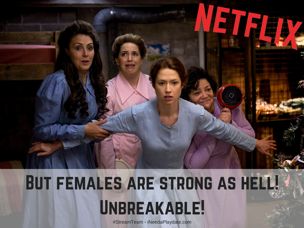 Today in lecture and small section we talked a lot about the feminist movement and women fighting for equal rights. Recently, my friend Michaela showed me the theme song for a show called Unbreakable Kimmy Schmidt, a show about a woman who was captured by a cult for 15 years and was found and is now trying to immerse herself back into regular life. She is “unbreakable” because she takes her plight in stride and tries to live her life normally and positively. This related because in the theme song, one of the lines is “Females are strong as hell.” This is something that empowers females and would be a viewpoint that could be beneficial for the feminist movement today, and could’ve been back during the 1960s-1970s of the second wave of feminism.