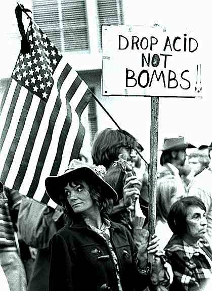 U.S. soldiers fought in Vietnam from 1945-1975, however, protests about the war did not begin in America until around 1965 when America started bombing North Vietnam. This was a problem because the damage being done in North Vietnam not only killed the Vietcong but the innocent Vietnamese people as well! And also in the process young college-aged American soldiers were being murdered as well! This sparked a lot of protesting in America. American’s began protesting in the streets and movements began being made! The hippie movement came out of the Vietnam war as well as many political movements on college campuses such as Berkley. “Drop acid, not bombs,” was only one of the many slogans used to put an end to the Vietnam War.