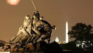 I have only been to Arlington, VA. one time and regretfully I only viewed the the US Memorials from a car window at night. The most striking was the Iwo Jima Memorial and the following image is close to what I remember from my visit. The five Marines and one Navy sailor continue to give me goosebumps.
