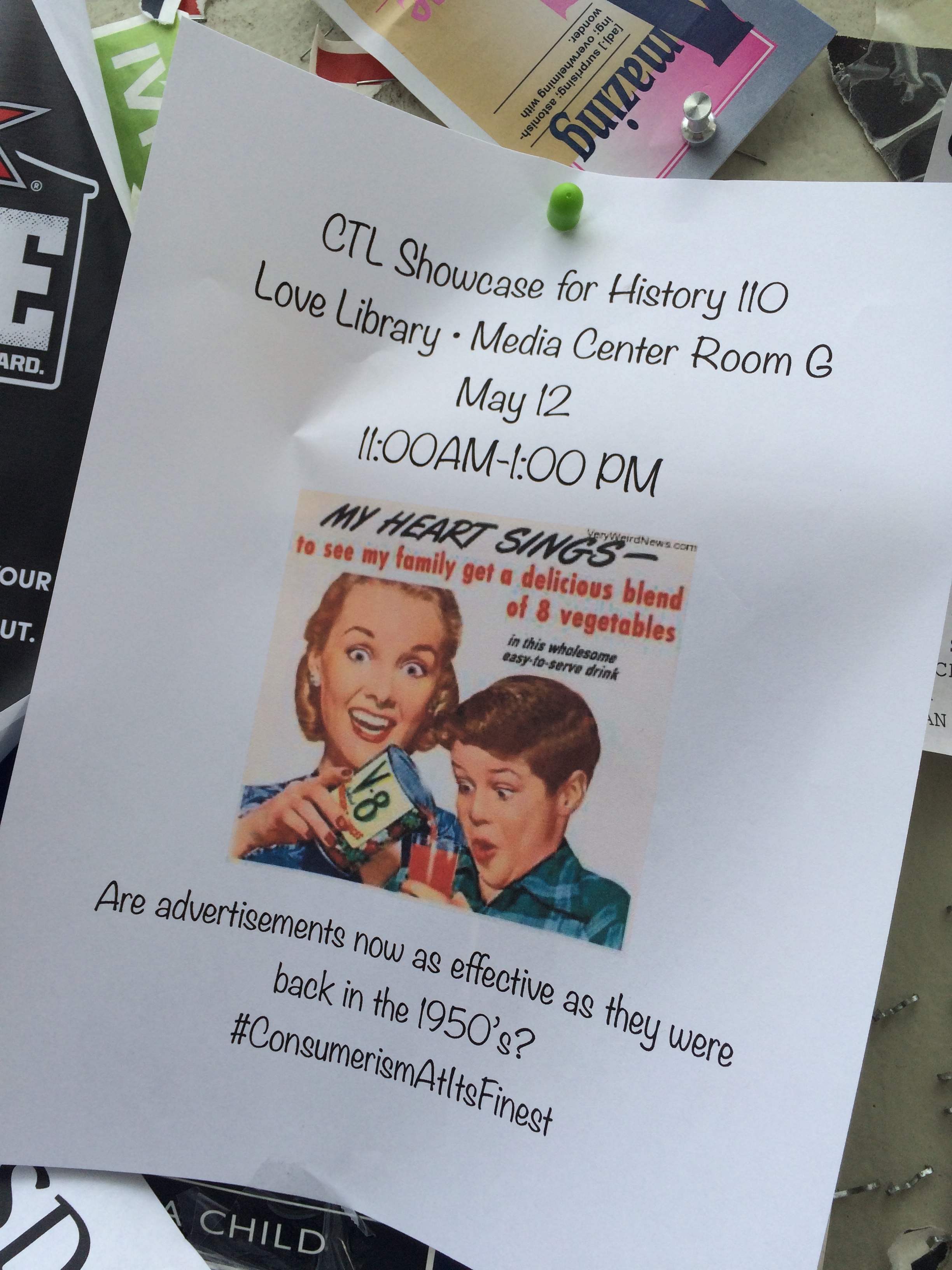 CTL Showcase May 7, 2015kaylirapozo This is the flyer I made for the showcase! I hung it up outside of my dorm building on the bulletin board. Share this: Click to share on X (Opens in new window) X Click to email a link to a friend (Opens in new window) Email Click to share on Facebook (Opens in new window) Facebook Click to share on LinkedIn (Opens in new window) LinkedIn Click to share on Pinterest (Opens in new window) Pinterest Click to share on Tumblr (Opens in new window) Tumblr Like Loading... Related