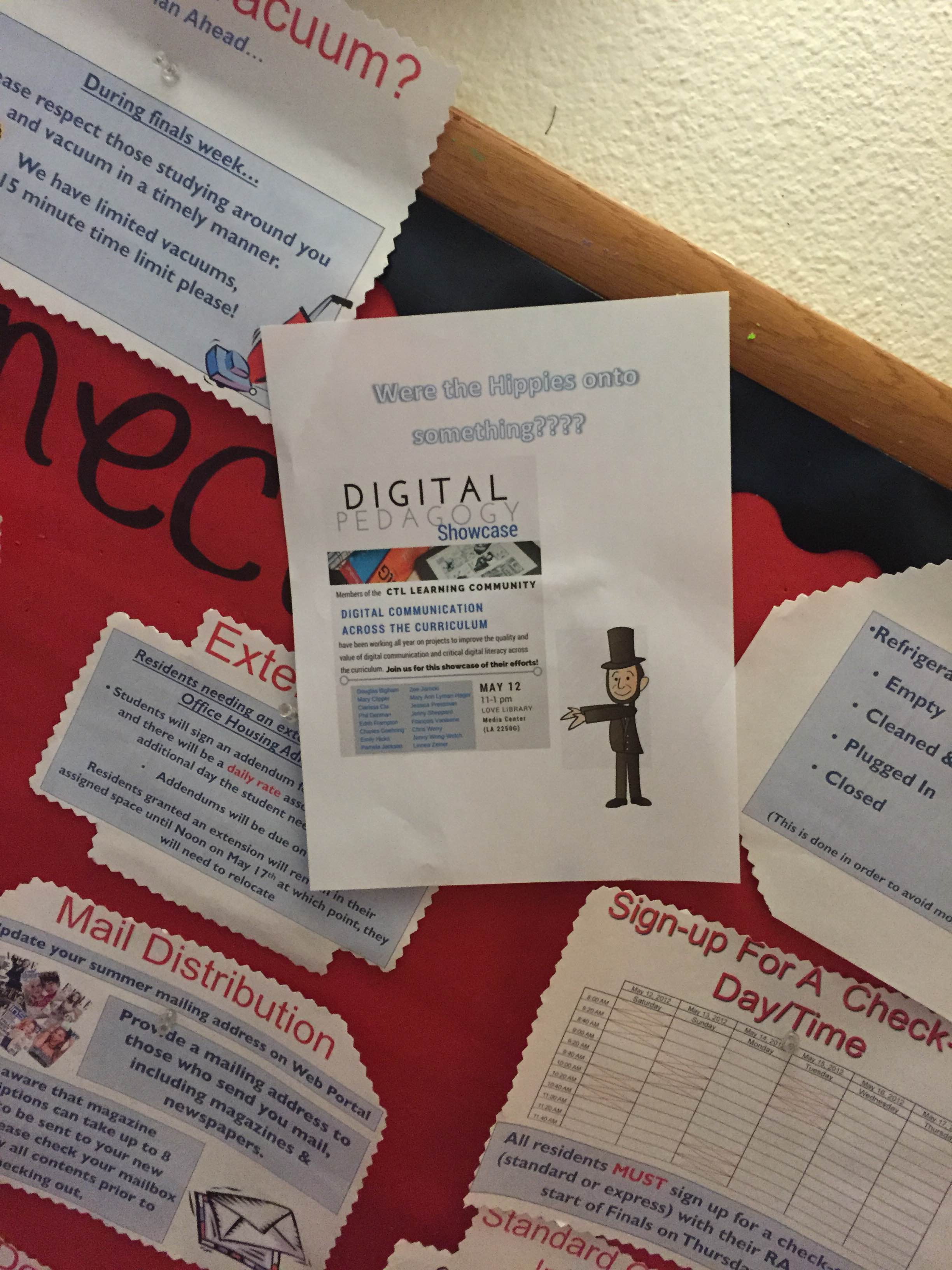 For the CTL extra credit assignment i posted this flyer on an information board that i saw walking towards class by my dormitory. I added a picture of Abe Lincoln pointing towards the event date and location along with a question on top of the flier to help bring attention to it.